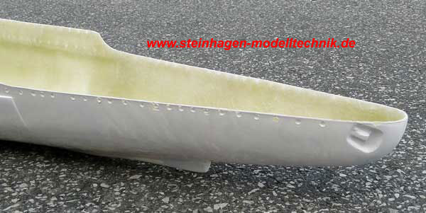 Der von uns handgefertigte GfK-Rumpf hat alle wesentlichen Details,