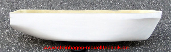 GFK-Rumpf im Maßstab 1:100: Länge 82 cm, Breite 16 cm, Höhe 16 cm