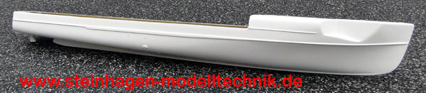 Natürlich hat dieser Rumpf Detaillierungen angeformt wie Scheuerleisten, Abgasöffnungen und Staukeil.