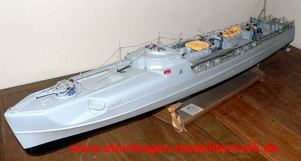 Der GFK-Rumpf des Schnellbootes S 38 - 100 entspricht dem gewohnten Qualitätsmaßstab aller unserer Modelle.